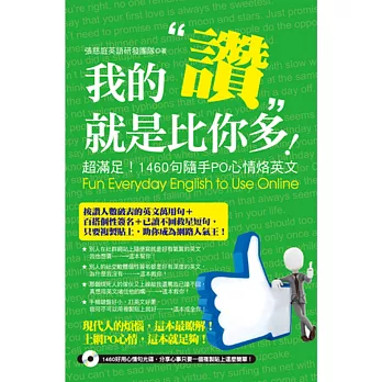 我的「讚」就是比你多!:超滿足!1460句隨手PO心情烙英文(附光碟)購買網址:http://www.books.com.tw/exep/assp.php/87926/products/0010645271?utm_source=87926&utm_medium=ap-books&utm_content=recommend&utm_campaign=ap-201706